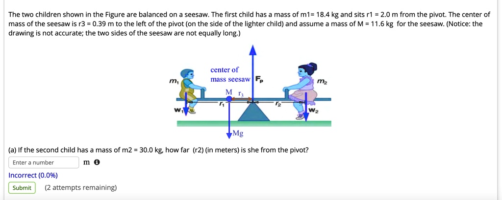 Solved The Two Children Shown In The Figure Are Balanced On Seesaw The First Child Has Mass Of M1 18 4 Kg And Sits R1 2 0 M From The Pivot The Center Of