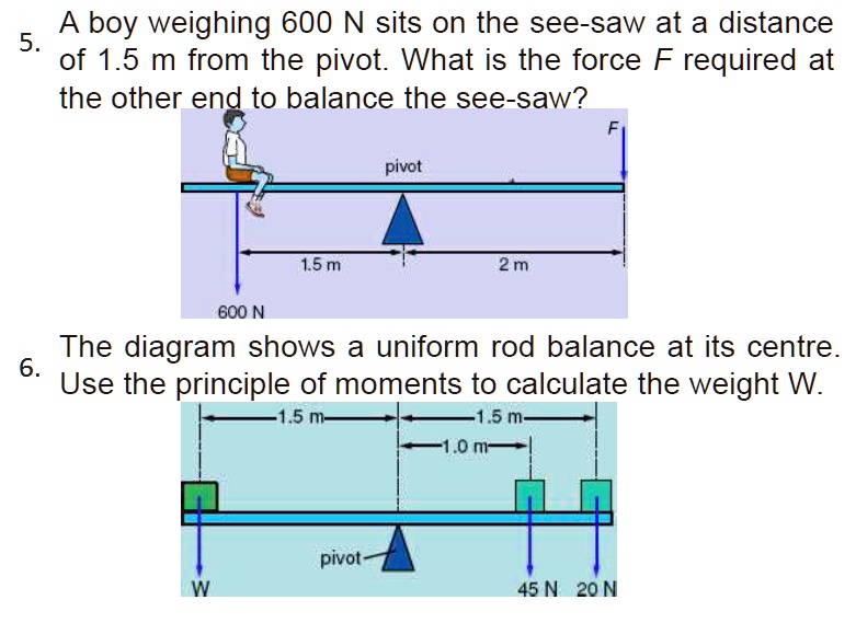 Solved A Boy Weighing 600 N Sits On The See Saw At A Distance 5 Of 1 5 M From The Pivot What Is The Force F Required At The Other End To Balance The
